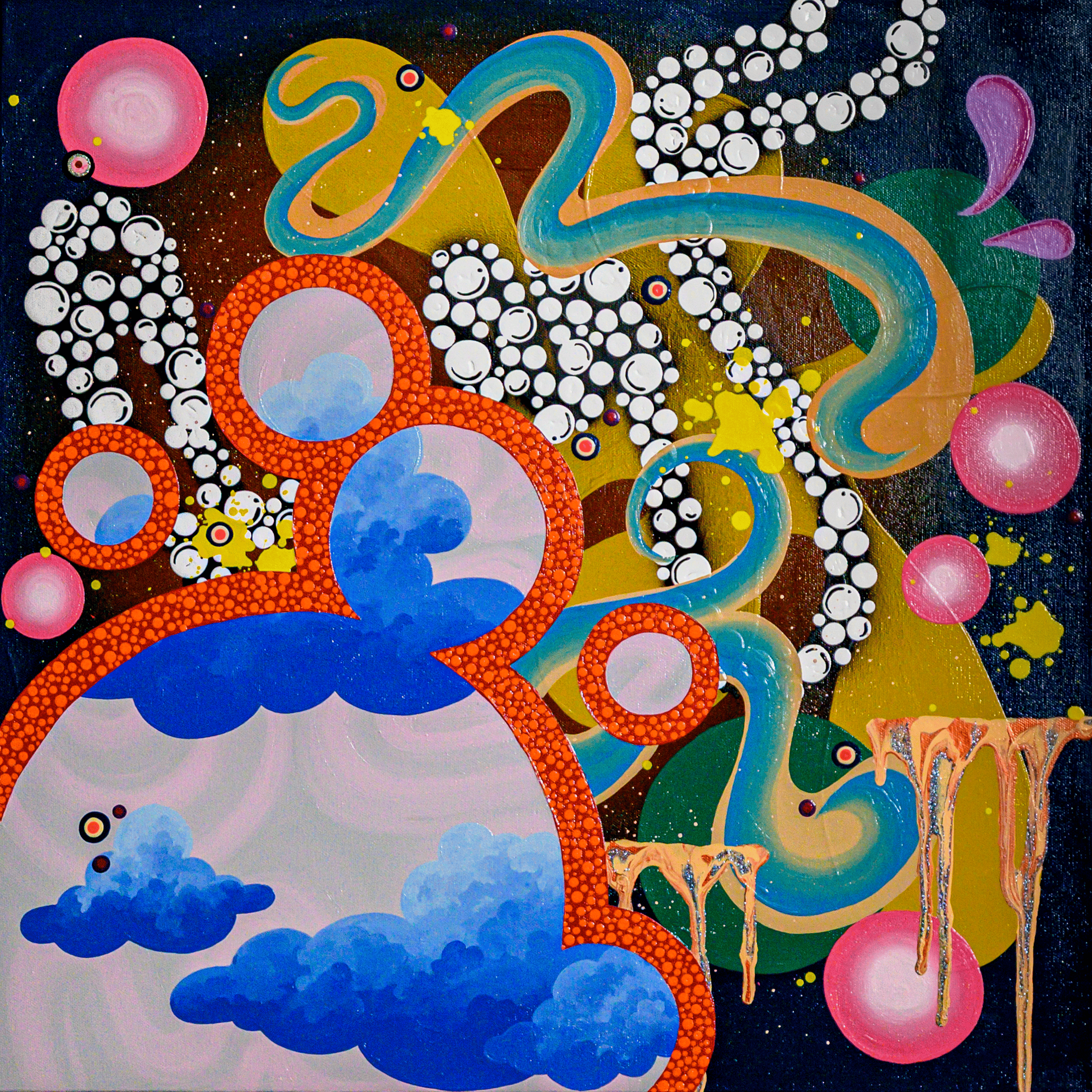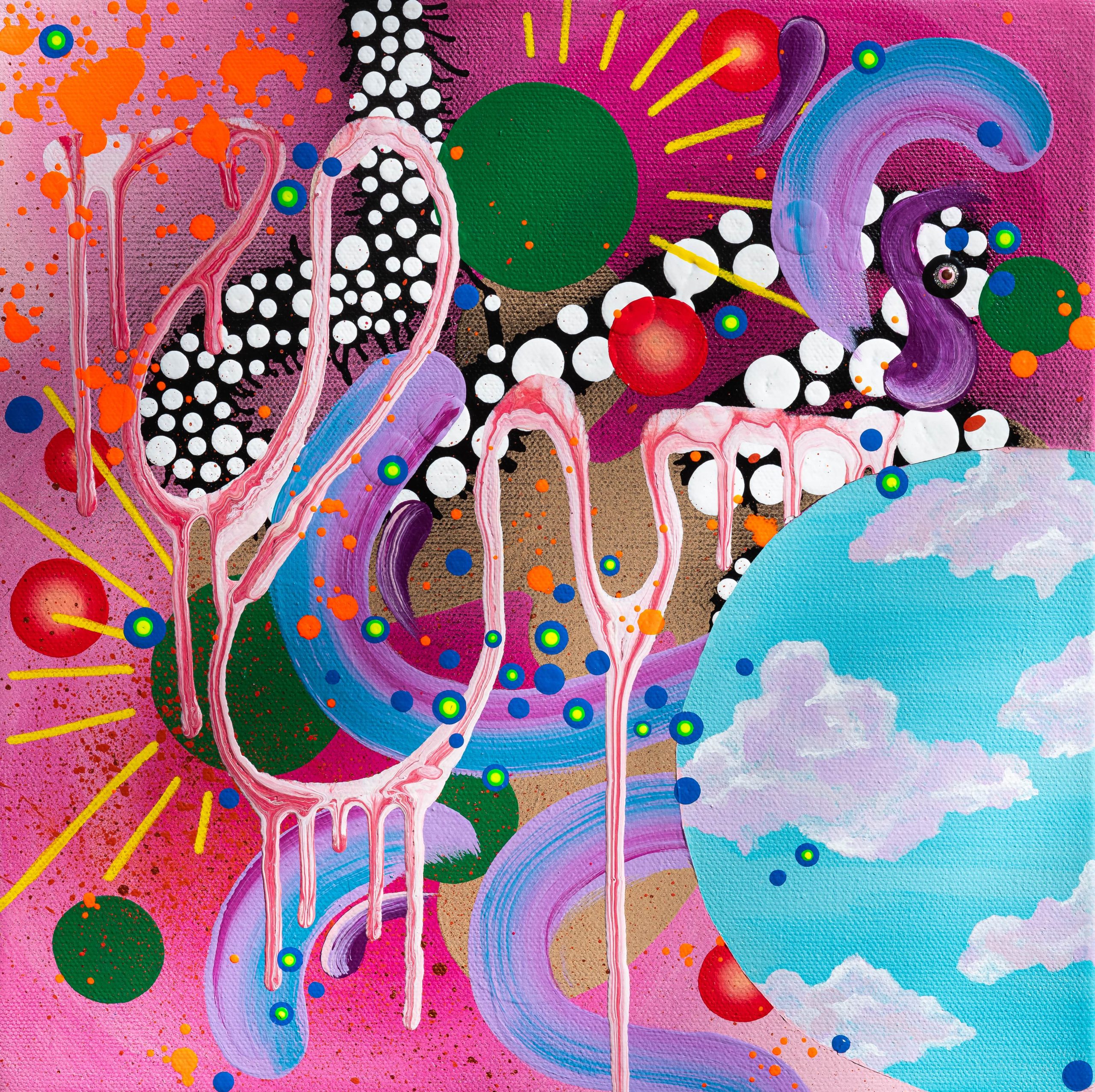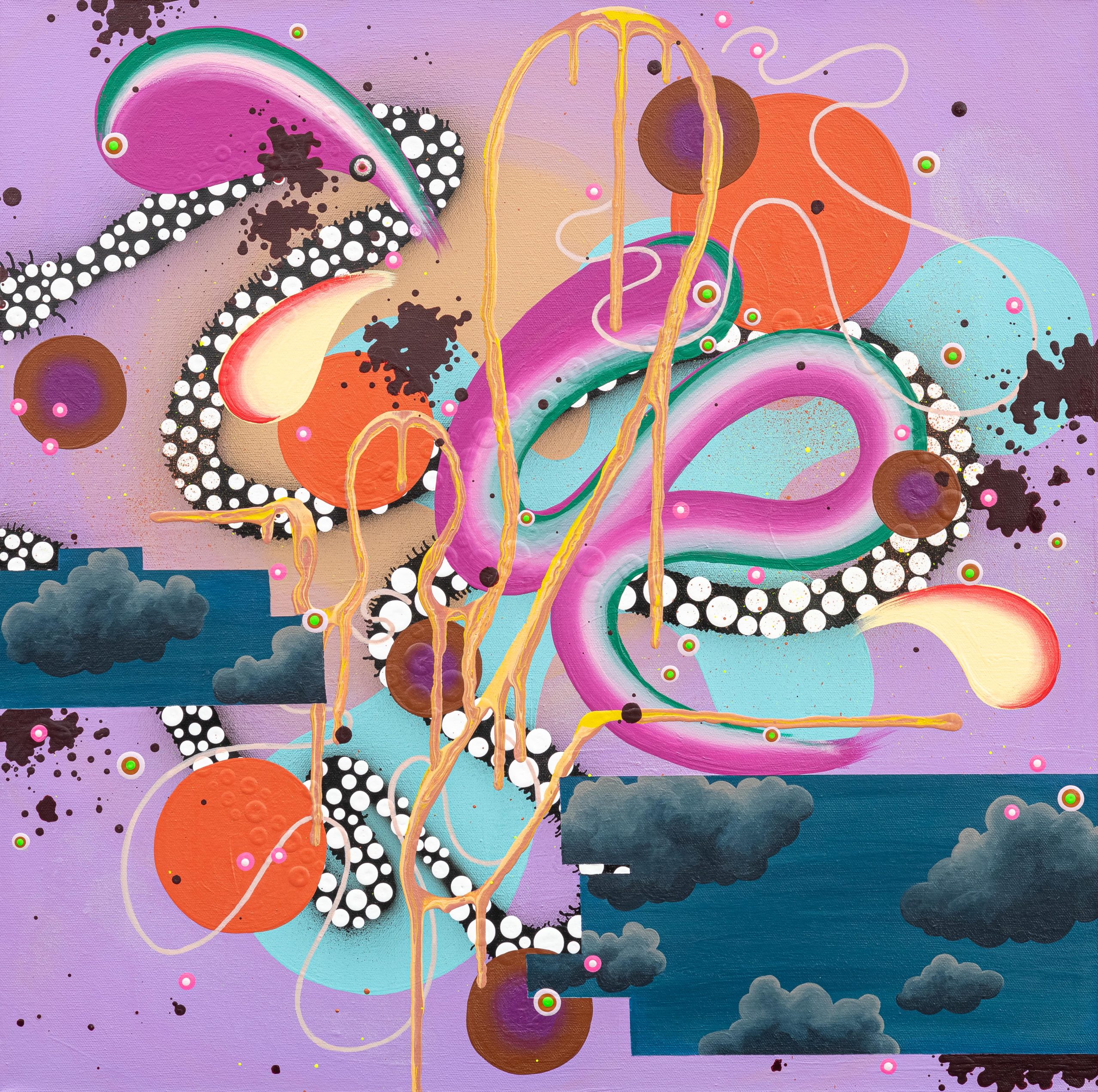 Hailey’s art is ever-evolving. She has shifted from depicting the female form and other natural elements as-is, to abstracting and simplifying the form into movement, and now creating dreamscapes of her inner world in simple forms that detail her emotions. Through the chaos of her energetic creations, she looks to create moments where the viewer can get lost in the details. Hailey is focused on creating moments that elicit feelings through the use of color, shape, movement, texture, and the occasional use of glitter.