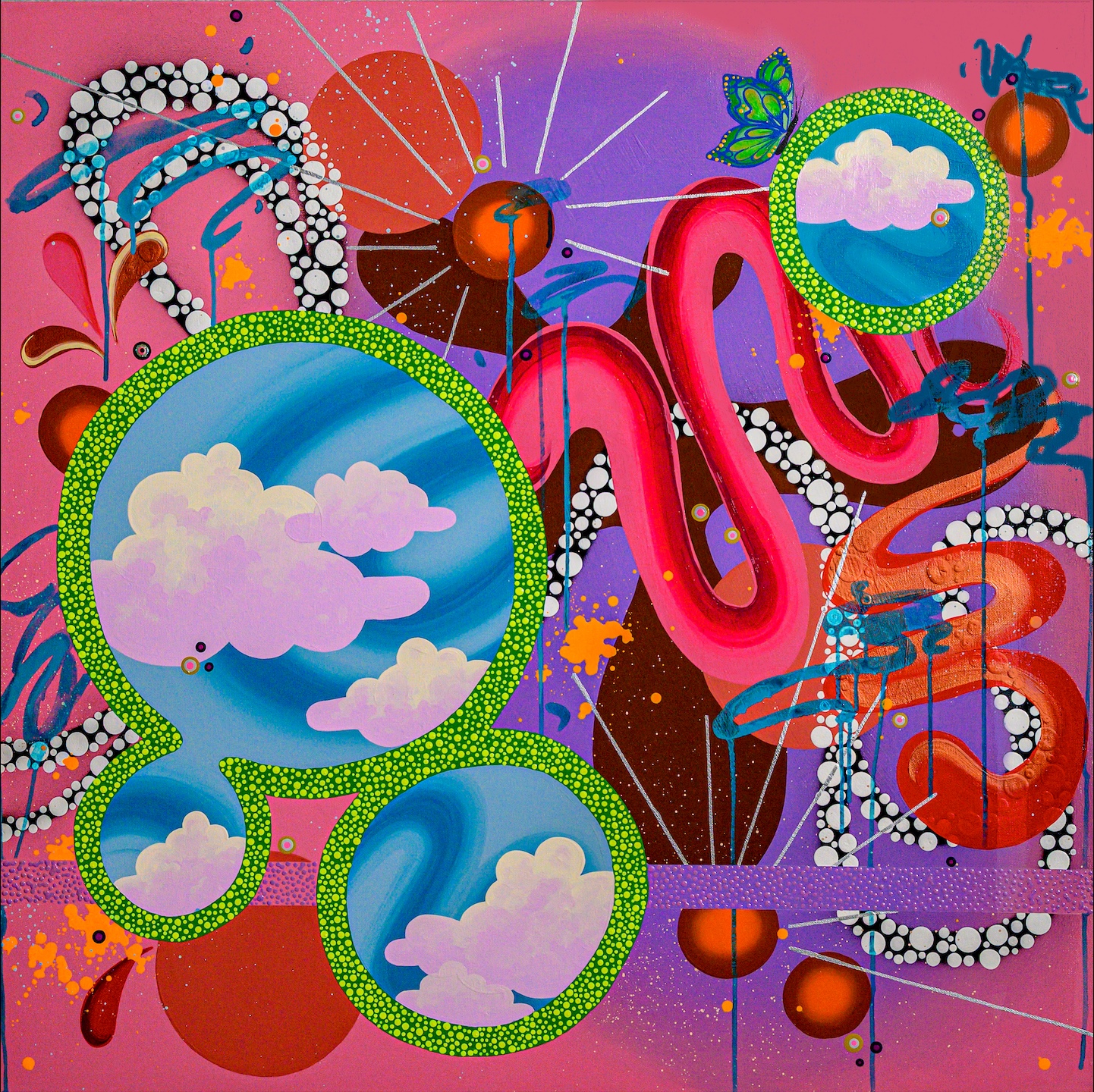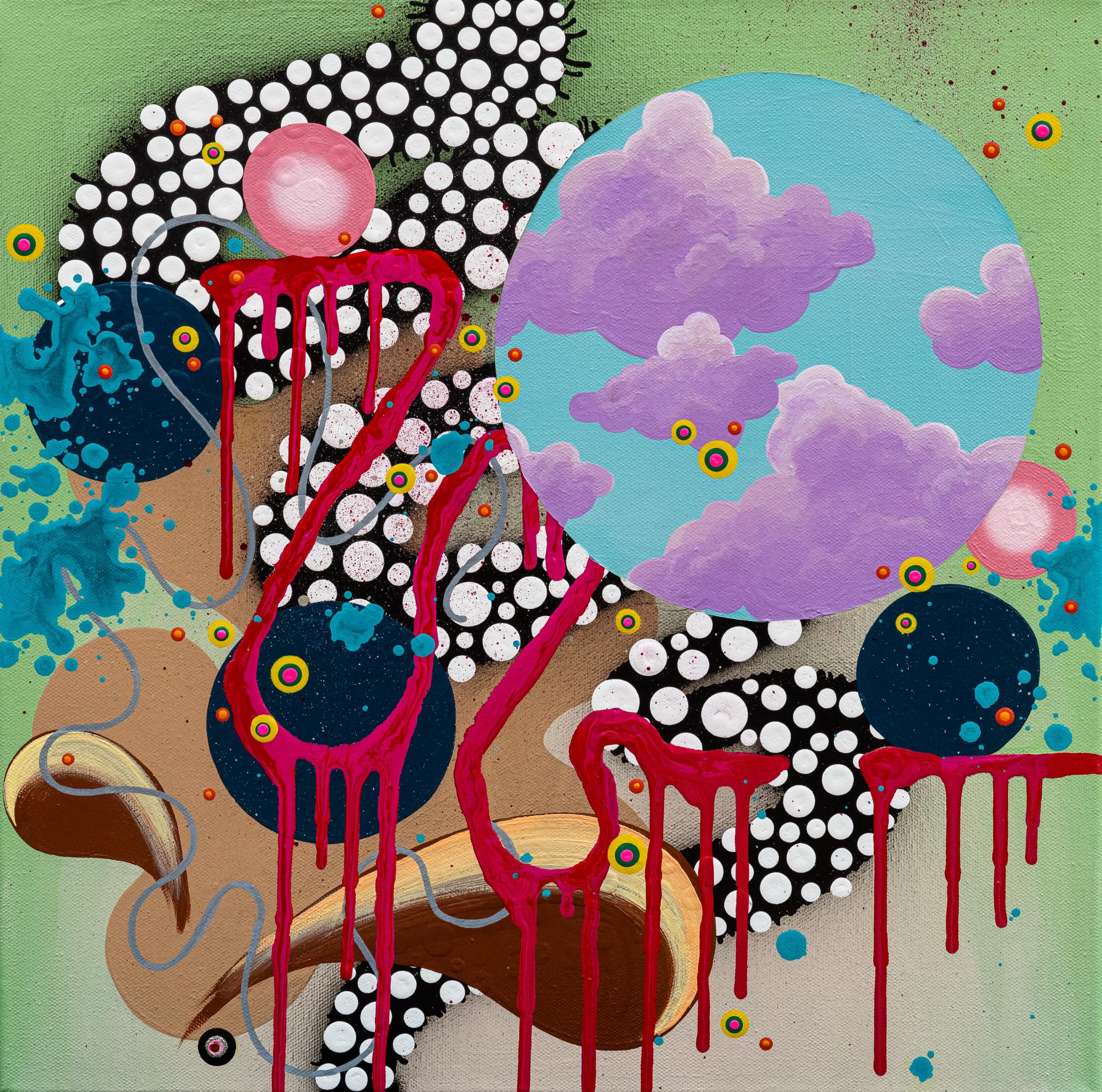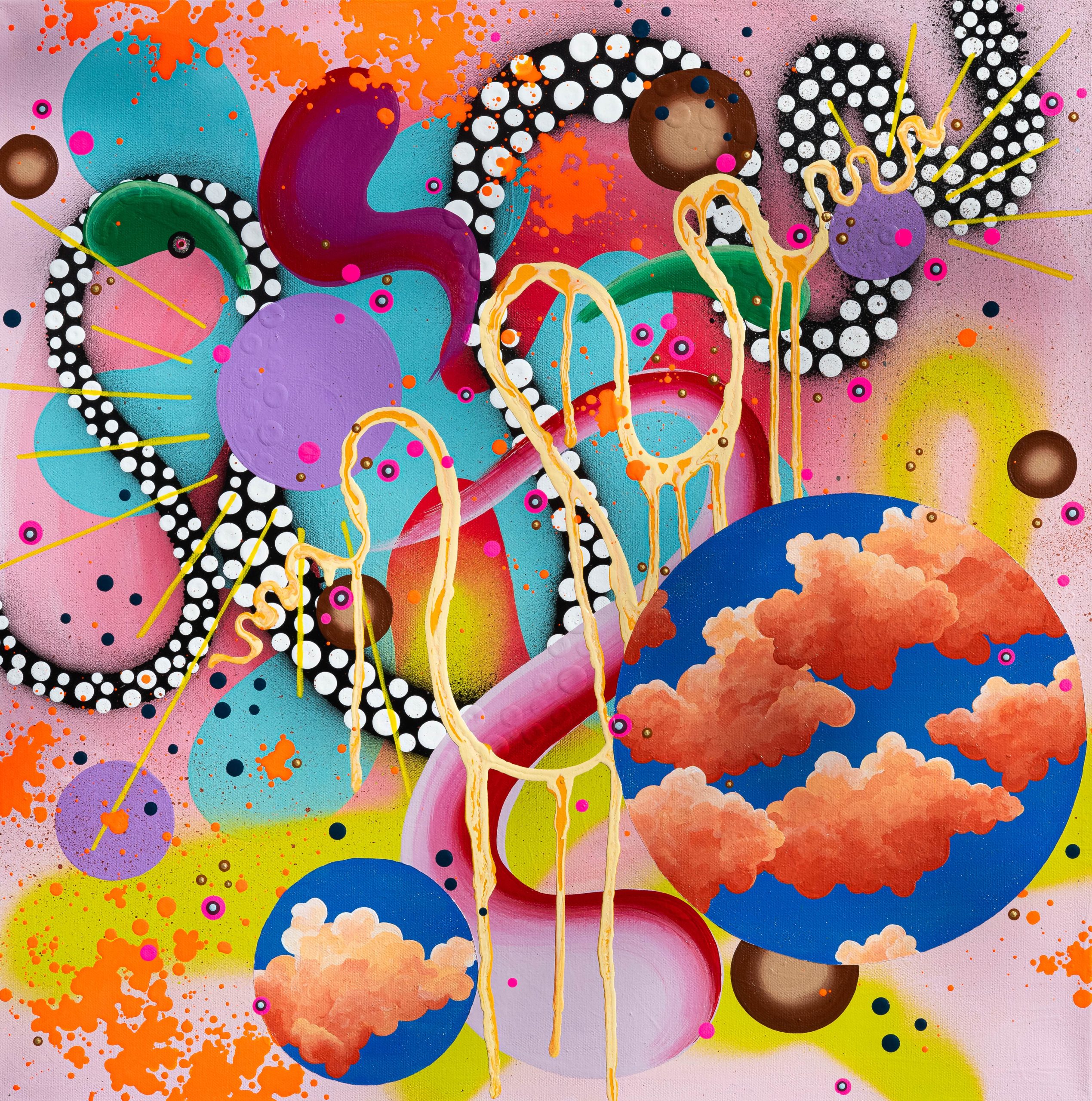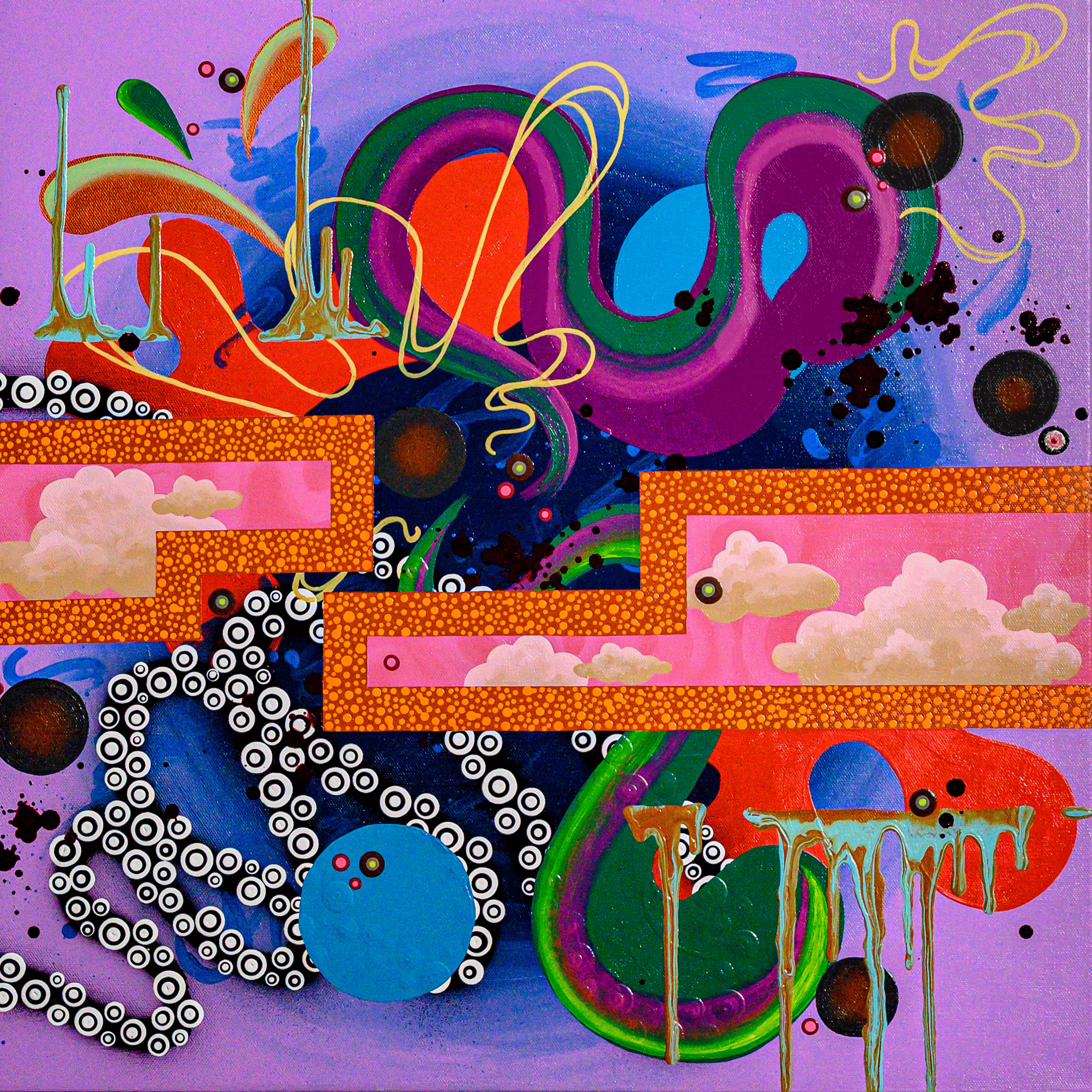 Hailey’s art is ever-evolving. She has shifted from depicting the female form and other natural elements as-is, to abstracting and simplifying the form into movement, and now creating dreamscapes of her inner world in simple forms that detail her emotions. Through the chaos of her energetic creations, she looks to create moments where the viewer can get lost in the details. Hailey is focused on creating moments that elicit feelings through the use of color, shape, movement, texture, and the occasional use of glitter.
